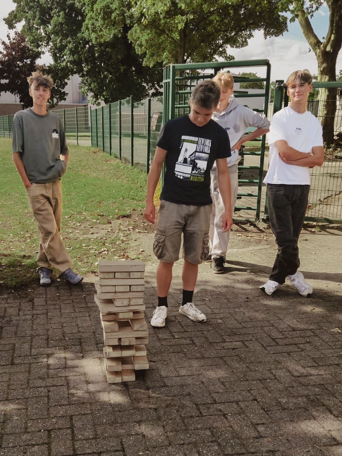 We kwamen rond de middag aan, waarna we eerst samen iets aten. In de namiddag deden we een fotozoektocht door het centrum van Pelt. Dit vond ik leuk om zo een stuk van de stadskern te leren kennen. Vervolgens speelden we allerlei teambuildingsspelletjes, zoals katapultschieten en Jenga. ’s Avonds had meneer Starckx een quiz voorbereid, die bestond uit verschillende onderwerpen. Ik vond dit wel vermakelijk.
